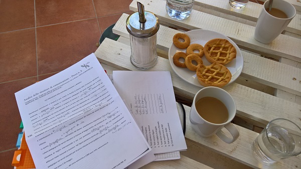Weiter ging es mit Grammatik. Heute ging es um verbi pronominali in allen Ausprägungen (einige kannte ich bereits, andere waren mir komplett neu). Zu diesem Zeitpunkt fing mein Kopf dann so langsam an vor sich hinzuqualmen.