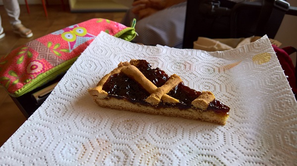 Dann gab es Grund zu feiern: Eine Italienisch-Lehrerin aus München, die heute bei uns hospitiert hat, hat heute Geburtstag. Zur Feier des Tages hatte unsere Lehrerin eine Crostata zubereitet. ? Mmmm, lecker! Nach der Cappuccino-Pause ging es gleich weiter mit Feiern - die Schülerin aus Serbien, die hier vier Wochen Sprachkurs gemacht hat, hat zum Abschied bei unserem Stamm-Cafè eine große Auswahl sizilianischer Leckereien besorgt. Es wurde also nach der Crostata gleich weitergeschlemmt.